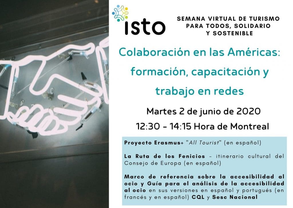 L’accordo è stato presentato martedì 2 giugno nel corso del webinar “Collaborazione nelle Americhe: educazione, formazione e networking” realizzato in occasione della Prima Settimana Internazionale del Turismo Sociale organizzata dall’Organizzazione Internazionale di Turismo Sociale ISTO tra il 28 maggio e il 4 giugno, per la prima volta in tutto il mondo. Attraverso una serie di incontri online su diversi temi è stato dibattuto il ruolo del turismo nella nuova società post Covid19, desiderosa di dare un senso alla propria vita personale e familiare, e quali possibilità si aprono per dare un senso umano e sociale al turismo nei prossimi anni.
