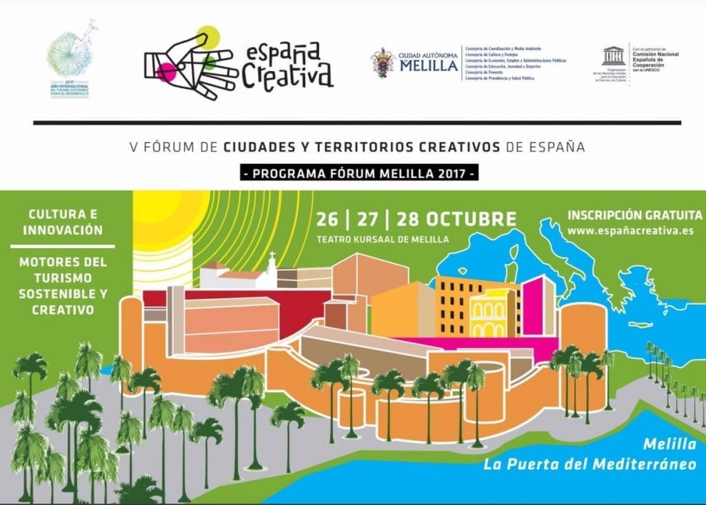Du 26 au 28 Octobre 2017 aura lieu à Melilla (Espagne) la V Edition du Forum des Villes et des Territoires Créatifs d’Espagne dédiée à la thématique Culture et innovation, moteurs du Tourisme Créatif et Durable.